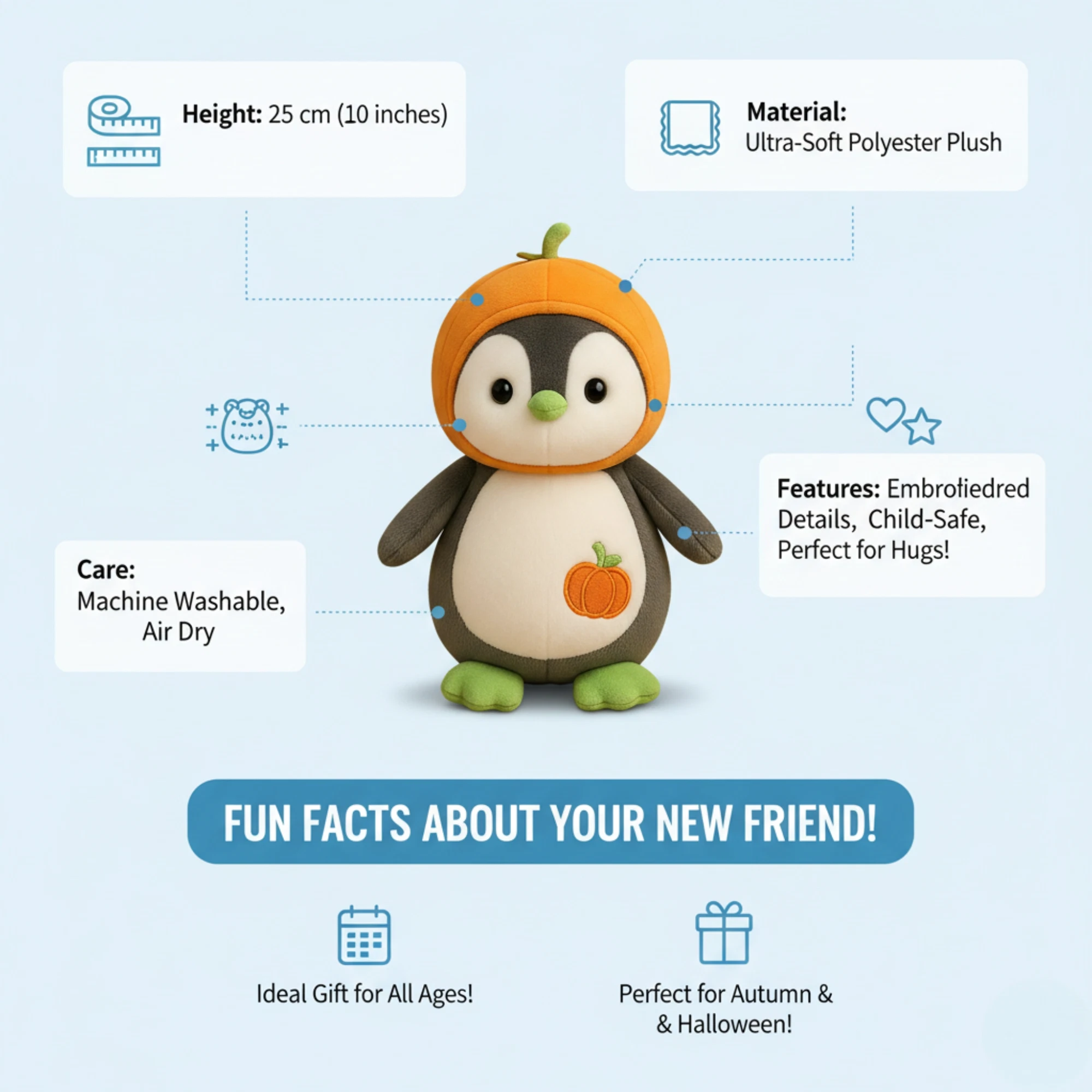• Charming Penguin Design – Features a cute face, little wings, and a cozy winter look.